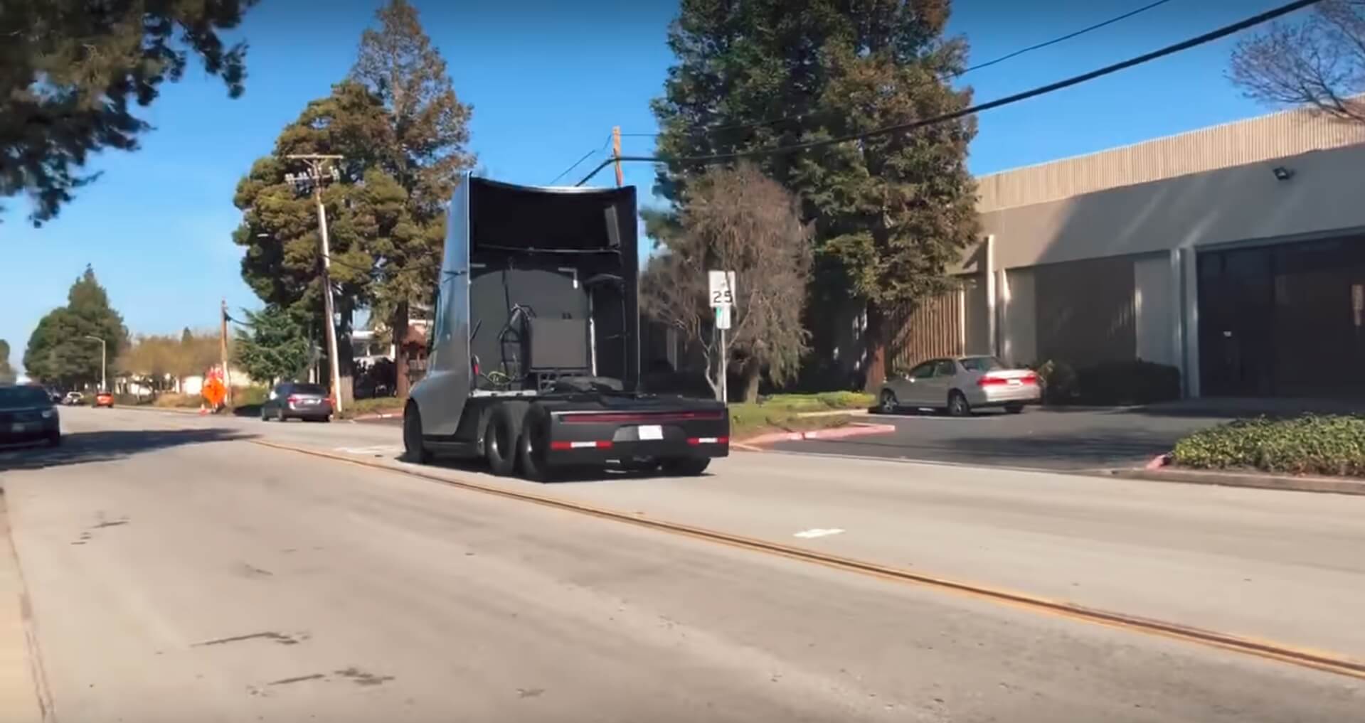 Электрический тягач Tesla Semi, запуск которого в серийное производство запланирован на 2019 год, вновь попал в объективы камер. На этот раз прототип был заснят в движении и без маскировочного покрытия.