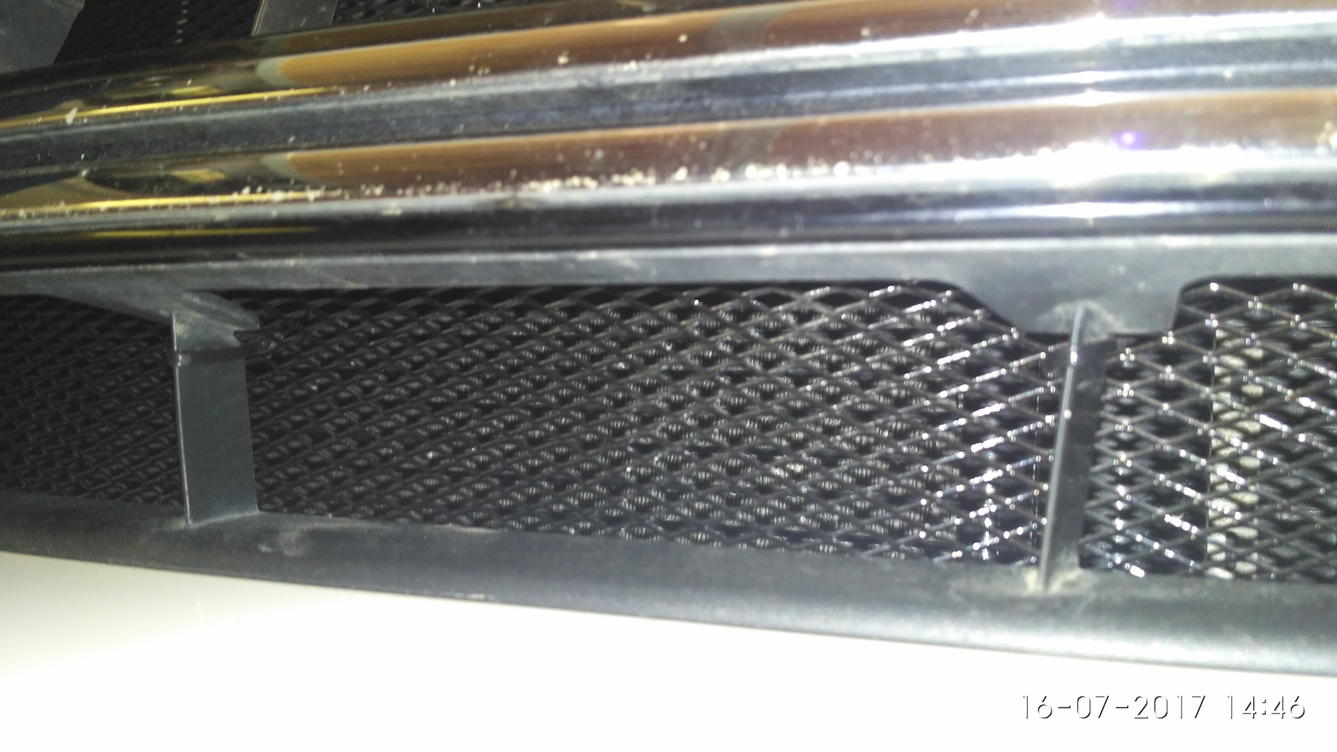 - Установите готовую сетку в проем бампера поверх штатной решетки, закрепив пластиковыми хомутами.
