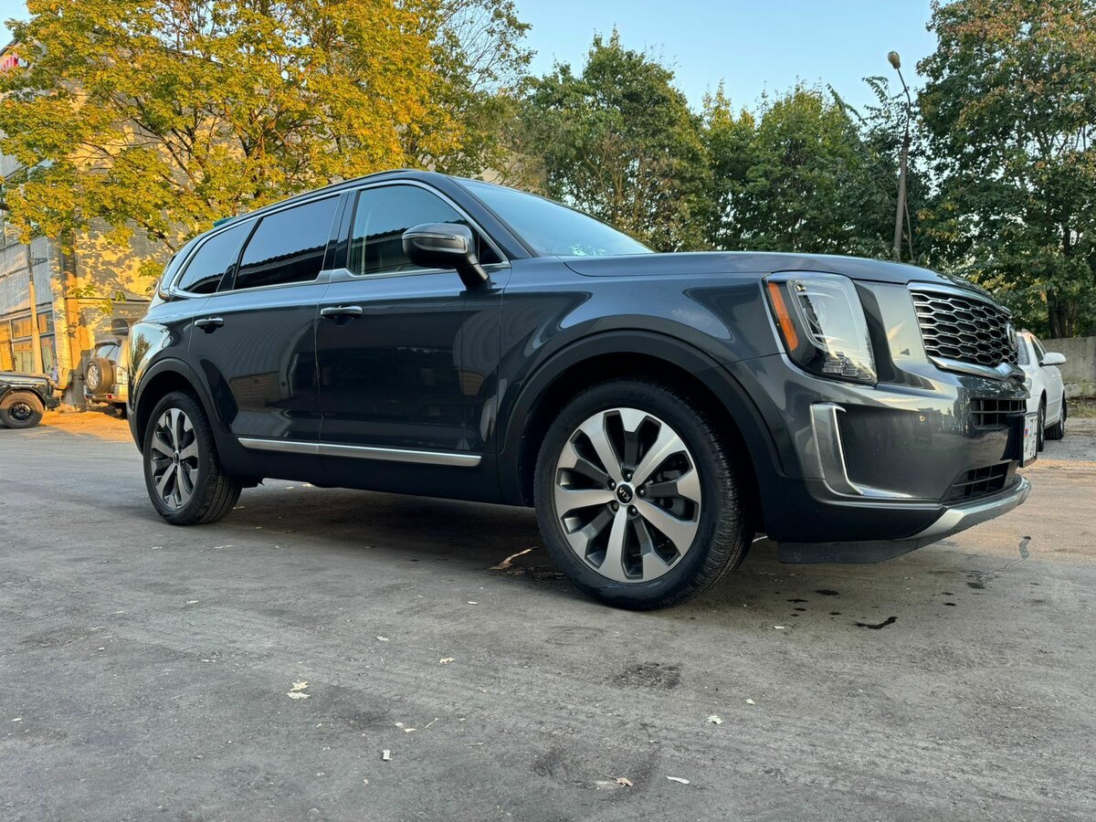> Внешность: брутальный и статусный дизайнДизайн Telluride выделяется на фоне других моделей KIA. Американцы видят в нем черты Cadillac Escalade, а европейскому глазу могут уловиться отсылки к Bentley Bentayga, Rolls-Royce Cullinan и Range Rover. В профиль кроссовер напоминает Volvo, но в целом создается впечатление оригинальной, а не подражательной работы. Результат впечатляет – это, пожалуй, самый брутальный и внушительный кроссовер в корейской линейке. На первый взгляд Telluride выглядит современно, но при детальном рассмотрении заметно, что в базе вместо светодиодной оптики используются обычные лампы. Казалось бы, для статусной модели «светодиоды» должны быть стандартом. Они появляются только в топовых версиях от $45 000, где также предлагается темная решетка радиатора (хрома, впрочем, меньше не становится). Максимальная комплектация включает 20-дюймовые диски, тогда как в нашей базовой – 18-дюймовые. Последние, однако, придают автомобилю дополнительную солидность и брутальность. Задняя дверь отличается большим размером, что удобно для пассажиров. Стекло опускается полностью – редкая и полезная опция. Дверь открывается почти на 90 градусов. Электропривода багажника в базе нет, зато присутствует система бесключевого доступа. Салон и багажник: контраст ожиданий и реальностиПобывав в США и изучив местный автопром, я был приятно удивлен дизайном салона Telluride. Он выглядит по-европейски современно. Однако первое впечатление обманчиво: материалы отделки выдают истинное происхождение. Панели торпедо, карты дверей и другие поверхности жесткие, «дубовые», даже там, где у японских конкурентов обычно используют мягкие вставки. Это разочаровывает. Обивка сидений – не кожа, а грубоватый кожзам, хотя смотрится неплохо и даже имеет перфорацию. Еще один сюрприз для автомобиля такого класса – вместо климат-контроля установлен обычный кондиционер. При такой внушительной внешности ожидаешь увидеть алькантару, мягкие материалы повсюду, 4-зонный климат и премиальную аудиосистему. С другой стороны, все кнопки идеально подогнаны, а шайба выбора режимов движения выглядит и работает превосходно. Руль, обшитый кожей, с удобными кнопками также не вызывает нареканий. Подлокотник глубокий, но без привычных USB-разъемов (они вынесены в другие, не менее удобные места). Мультимедийная система с поддержкой Apple CarPlay и Android Auto работает отлично и выглядит современно. Напомню, это базовая версия – в дорогих комплектациях экран будет 10-дюймовым. Удивительно, но при наличии простого кондиционера он является 2-зонным, позволяя пассажирам сзади регулировать температуру и обдув. Глядя на эти противоречия, сложно представить, что Telluride в нынешнем виде понравится требовательному европейскому покупателю. Панель приборов оснащена скромным монохромным дисплеем. Однако стеклоподъемники – с автоматическим открытием/закрытием, кнопки работают четко. Стандартная аудиосистема звучит на твердую «семерку». Посадка за рулем высокая, почти как в Land Cruiser 200, что неудивительно при схожих габаритах. Регулировки сиденья и руля – механические, поясничная опора отсутствует, но в целом кресла удобные. Несмотря на простоту, уровень оснащения системами безопасности впечатляет: даже в базе есть адаптивный круиз-контроль с функцией Stop&Go, удержание в полосе и контроль слепых зон. В целом, впечатления от места водителя скор