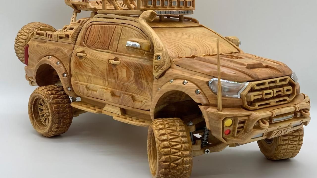 Этот автомобиль прошёл настолько радикальную переделку, что стал абсолютно неузнаваем. Его превратили в настоящий деревянный локомотив, что особенно заметно при сравнении со стандартным Jeep Commander 2008 года.