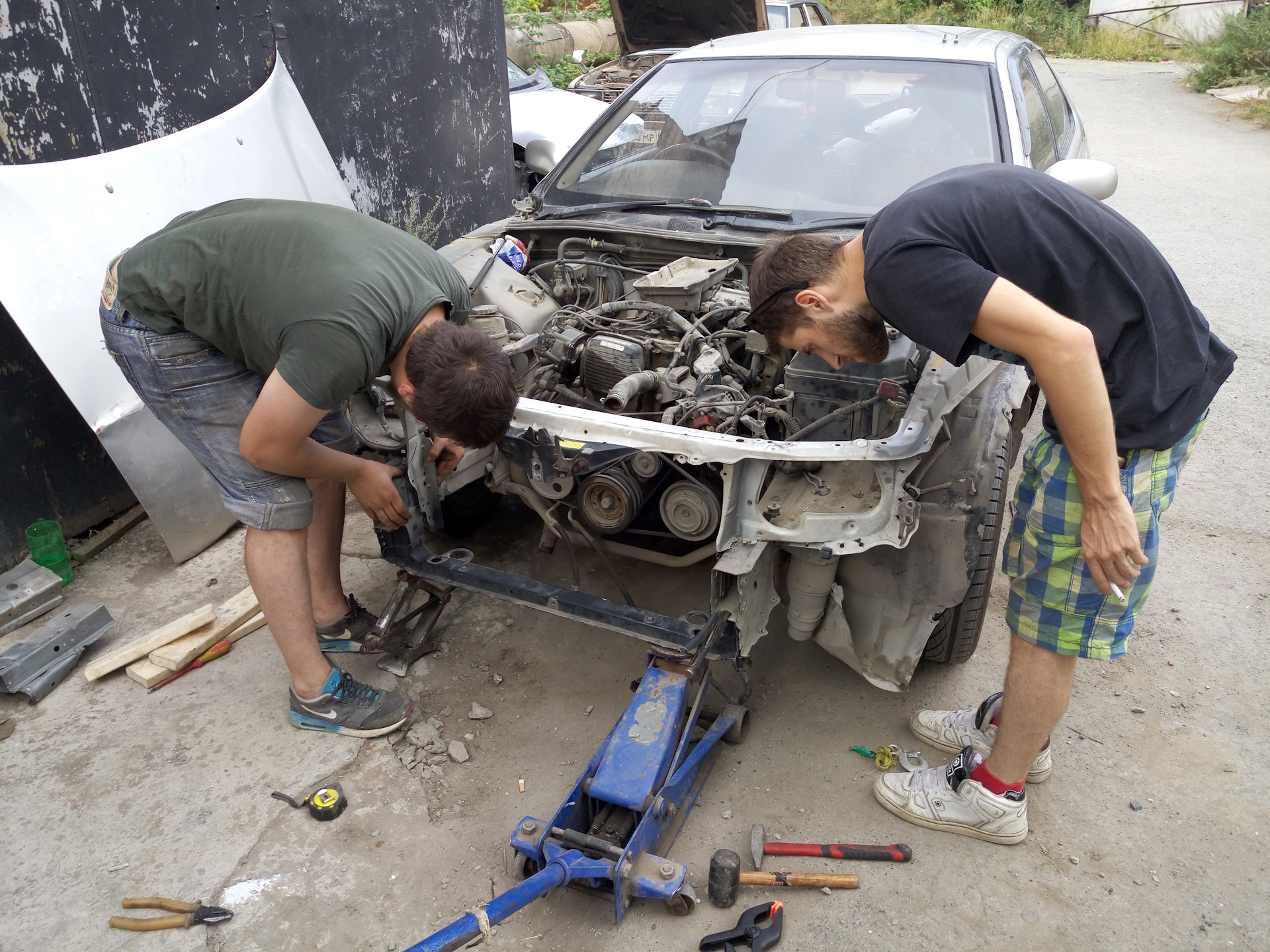 Разместив автомобиль во временно предоставленном гараже друзей, они приступили к работе. Ситуация осложнялась отсутствием большинства специализированных инструментов, но это не остановило энтузиастов.