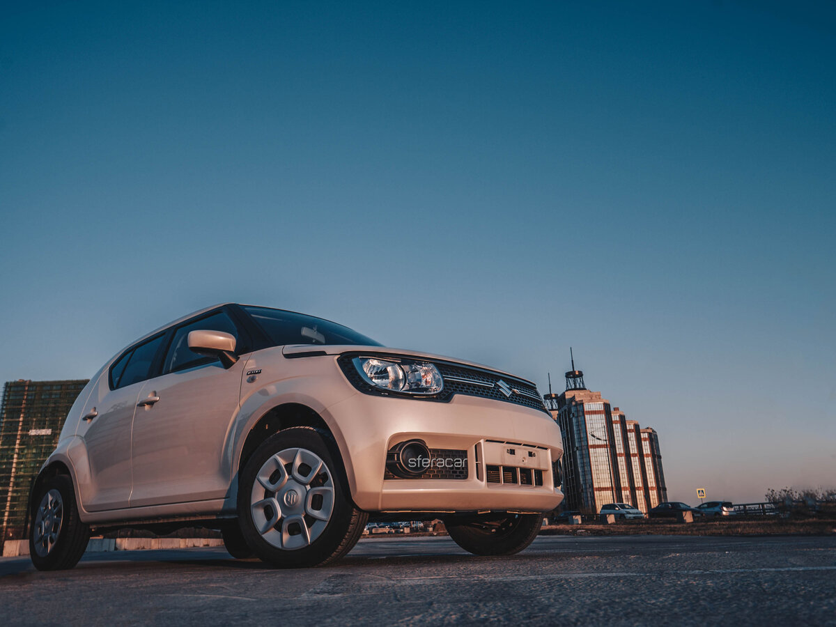 Suzuki Ignis выделяется на фоне других моделей бренда как самый миниатюрный автомобиль, доступный на рынке. Его внешние габариты могут ввести в заблуждение, создавая впечатление тесноты, однако на практике салон оказывается удивительно просторным для своих размеров. В этом обзоре мы не только оценим эргономику и дизайн, но и подробно разберем работу гибридной силовой установки, измерим динамические характеристики, а также проанализируем экономичность и уровень безопасности. Предпочитаете видео? Смотрите наш подробный обзор мини-кроссовера Suzuki Ignis:Класс и габариты: больше, чем кажетсяФормально Suzuki Ignis относится к А-классу, хотя некоторые классификации причисляют его к сегменту B. Для понимания его размеров удобно сравнить его с пятидверным smart forfour: при меньшей колесной базе (2435 мм против 2494 мм) Ignis имеет большую общую длину (3700 мм против 3495 мм). Таким образом, наиболее точным определением будет «ультракомпактный городской автомобиль с увеличенным дорожным просветом». Внутреннее пространство организовано на удивление эффективно. Благодаря вертикальной компоновке дверей и продуманной эргономике, в салоне комфортно размещаются четыре взрослых пассажира. Даже за высоким водителем на втором ряду может сесть человек среднего роста. Пятое место, заявленное в характеристиках, скорее носит формальный характер и подойдет только для коротких поездок. Эта компромиссность объясняется происхождением модели: Ignis создан на базе японских кей-каров – особого класса малолитражек, пользующихся налоговыми льготами в Японии. К этому же классу относится и легендарный внедорожник Jimny. Дизайн Ignis вызывает неоднозначные чувства. Если передняя часть с узнаваемой оптикой выглядит стильно и современно, то оформление задней части может показаться излишне вычурным. Колеса визуально выступают за пределы арок, что придает автомобилю специфический вид. Интересной деталью является стилизованный элемент на задней стойке, отсылающий к дизайну классической модели Suzuki Cervo 80-х годов. Интерьер и практичностьСалон выполнен в строгом, практичном стиле с обилием жесткого, но качественного пластика. Никаких посторонних скрипов не обнаружено даже на неровных дорогах. Интерьер нельзя назвать роскошным, но он логичен, удобен и отчасти напоминает оформление Jimny, хотя элементы управления здесь более компактны. Органы управления продуманы: приборная панель читается отлично, стрелки спидометра и тахометра в состоянии покоя опущены вниз, как в спортивных автомобилях. На руле расположены кнопки управления аудиосистемой и круиз-контролем. К недостаткам можно отнести базовую аудиосистему и отсутствие на нашем рынке опции сенсорного экрана, что лишает автомобиль камеры заднего вида. В максимальной комплектации также не хватает подогрева сидений и зеркал – важных опций для нашего климата. Эргономика для водителя на высоте: даже человеку ростом под два метра здесь просторно. Регулировка руля только по высоте компенсируется удачным расположением педалей. Второй ряд сидений рассчитан на двоих взрослых, но вертикальная посадка и недостаток пространства для ног делают длительные поездки не слишком комфортными. Объем багажника в 260 литров для автомобиля такого размера вполне приемлем для повседневных нужд. Складывающиеся спинки сидений увеличивают пространство, о