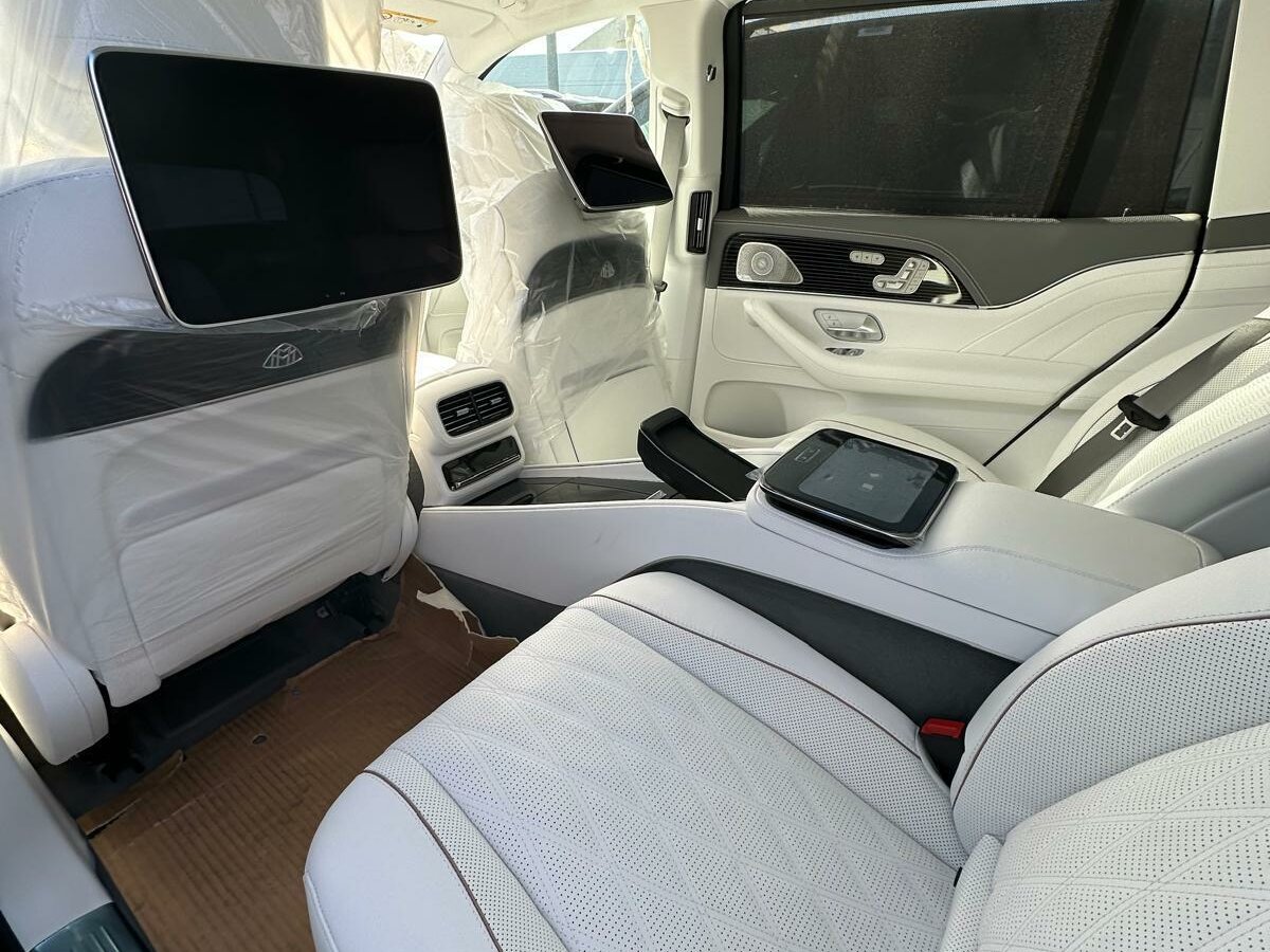 Салон: В Mercedes-Maybach GLS салон становится главным достоинством. Он сочетает простор, элегантный дизайн и передовые технологии. Среди оснащения — встроенный холодильник, ТВ-тюнер, система автомобильной телефонии, а также мультимедийная система для развлечения задних пассажиров с планшетным управлением. Задний ряд представлен двумя раздельными креслами с электрорегулировкой, функциями массажа, подогрева и охлаждения. Каждая деталь интерьера продумана до мелочей, что подтверждается на фотографиях.