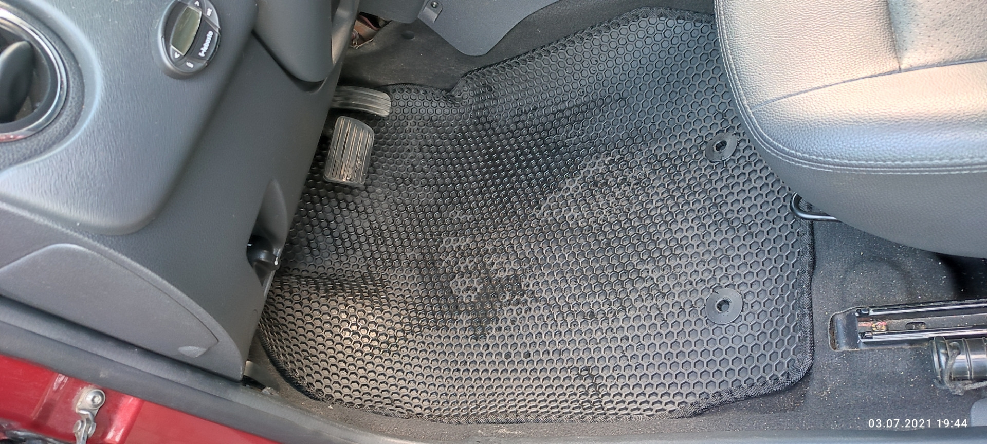 Пассажирский ковер также лег безупречно, практически полностью перекрыв штатное ворсовое покрытие. Люверс для крепления присутствует и здесь.