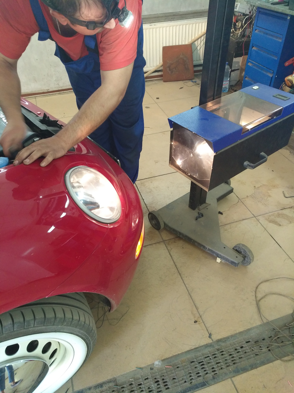 На первом этапе, с почти пустым баком, я установил реглоскоп перед машиной и отрегулировал фару, выставив её световой луч строго по горизонту. Это наша исходная, «нулевая» точка.