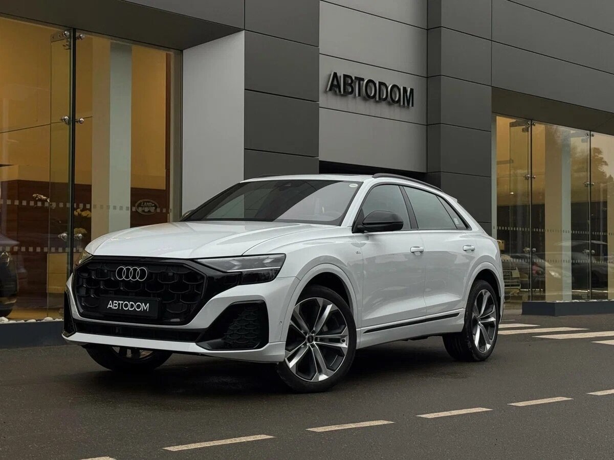 Презентация Q8 была приурочена к 30-летию бренда Audi в Китае, что подчеркивает важность этой модели. Кроссовер позиционируется как новый флагман марки, что отражает растущую значимость SUV-сегмента. Его внешность задает свежее направление для всей линейки «Q». Визуально автомобиль выделяется массивной восьмиугольной решеткой радиатора Singleframe, острыми фарами со светодиодной оптикой в базе и крупными воздухозаборниками на бампере. Боковой профиль подчеркнут выразительными линиями и расширенными колесными арками. Задняя часть узнаваема благодаря светодиодным фонарям, соединенным световой полосой. Стандартный экстерьер включает элементы из черного пластика, но опционально доступен спортивный пакет S-line с деталями в цвет кузова.