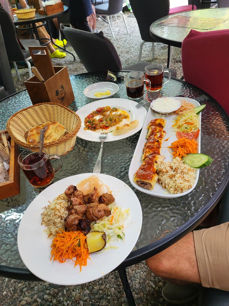 Одной из первых наших вылазок стала поездка в Верхнеармянское Лоо и выше, к так называемому «Ущелью ведьм». Само ущелье не произвело особого впечатления, но дорога к нему и виды стоили того. Местные жители порекомендовали нам кафе «Сатес», расположенное прямо над обрывом. Атмосфера там совершенно аутентичная: горный воздух, тишина, потрясающие панорамы. Это одно из тех мест, которые запоминаются надолго.
